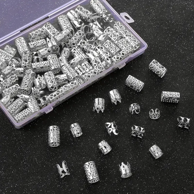 60pcs Vintage Alloy Hair Jewelry Set – Metal Cuffs, Rings & Clips for Braids and Dreadlocks